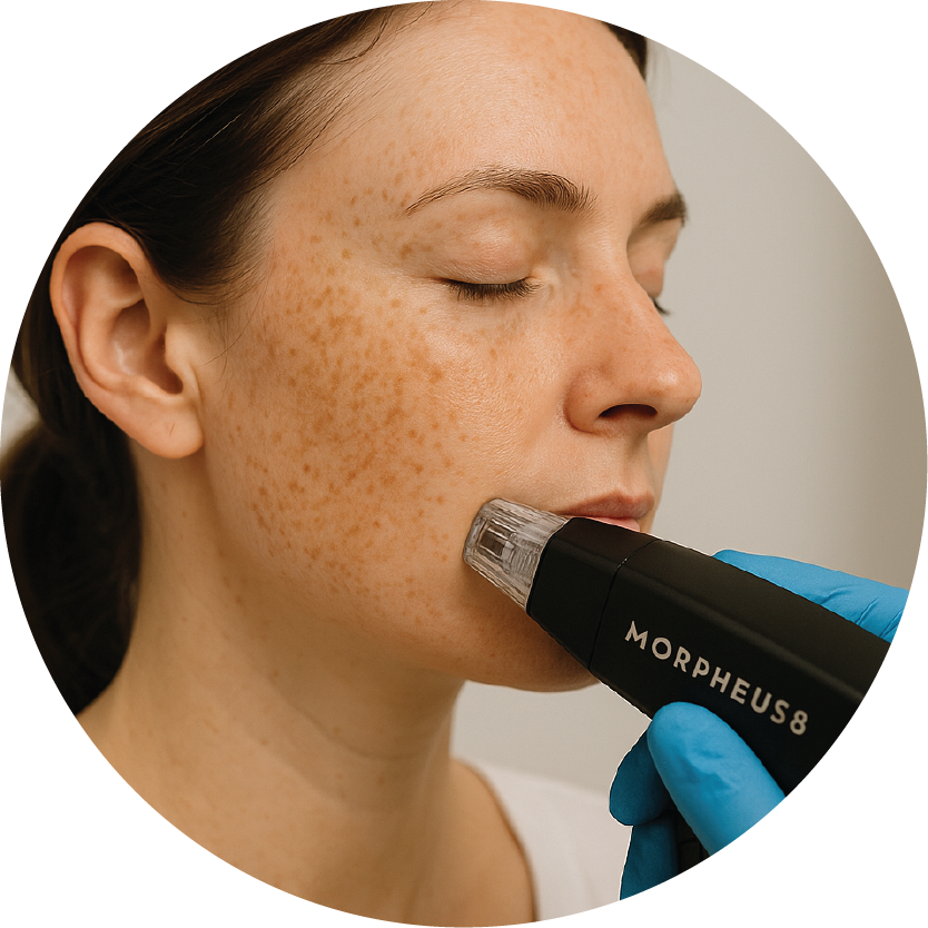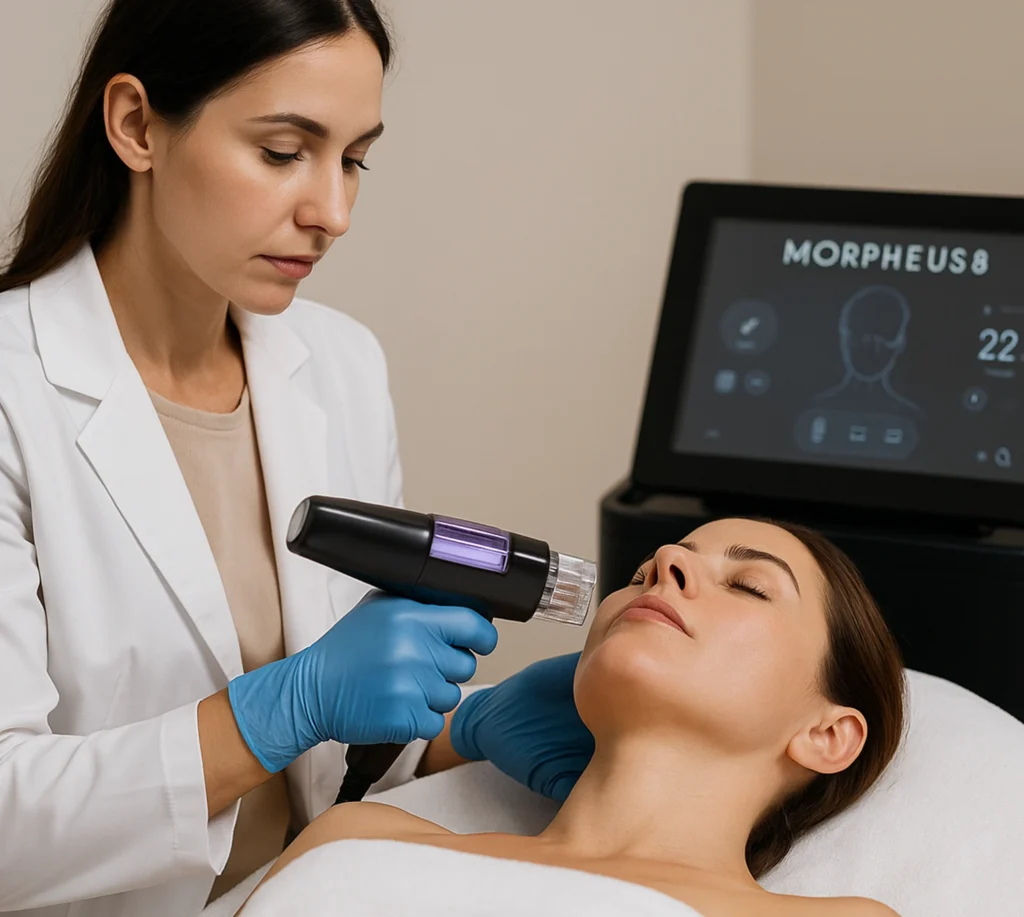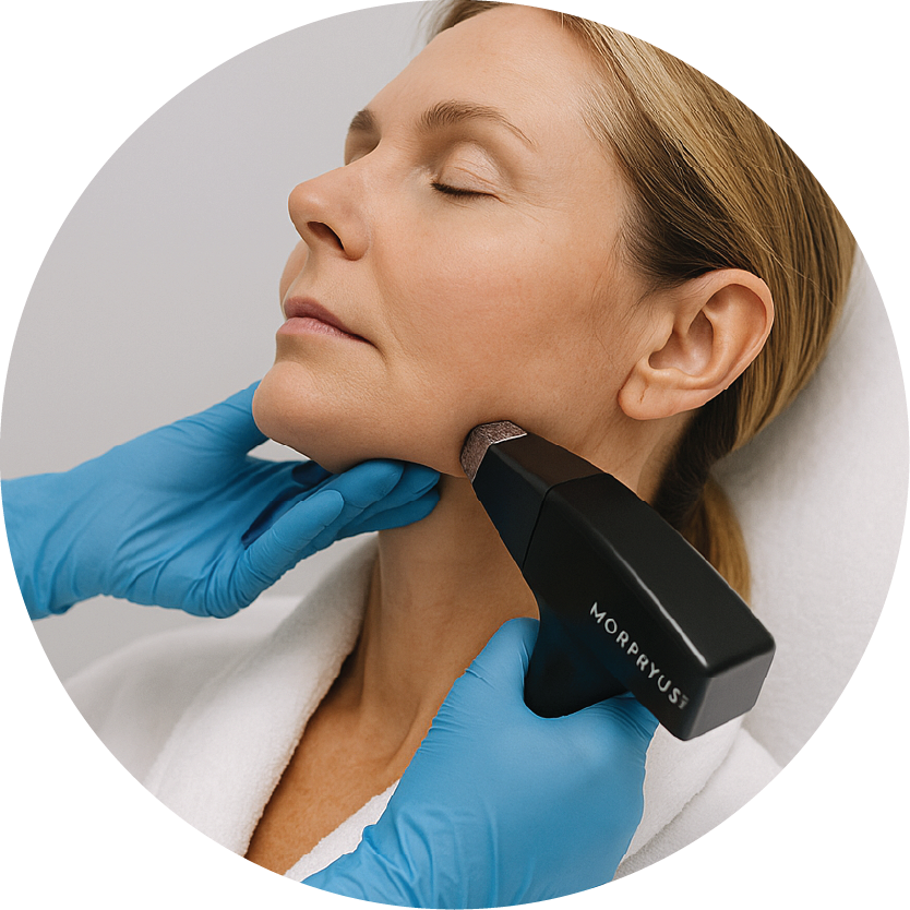 Morpheus8 is an advanced radiofrequency microneedling treatment that remodels collagen and tightens skin from the inside out. Ultra-fine, gold-coated pins deliver fractional RF energy at customizable depths (up to 8 mm), targeting the dermis and subdermis to firm laxity, smooth fine lines, soften acne scars, and refine pores.